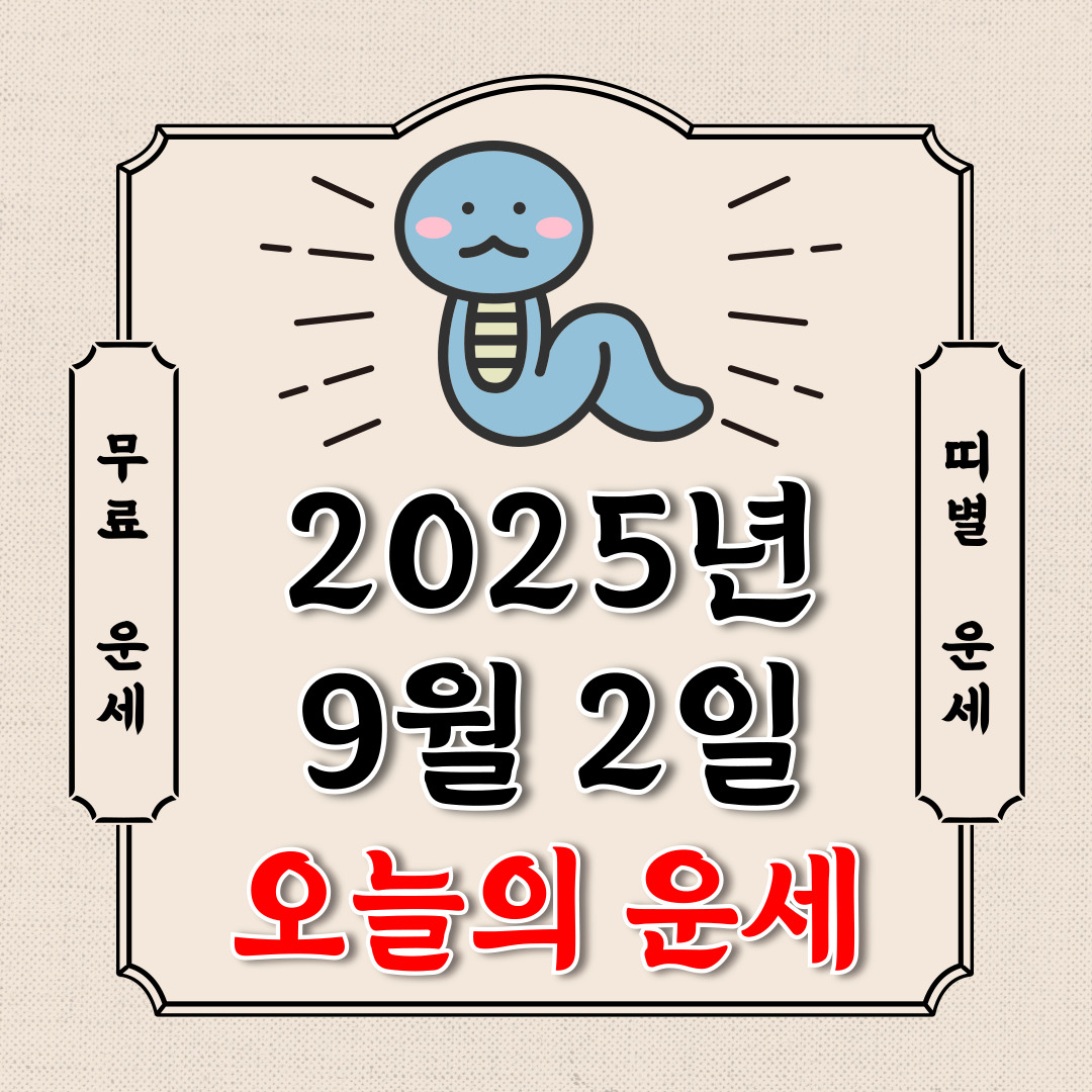 오늘의 운세 2025년 9월 2일 화요일 (음력 7월 11일 / 띠별 운세 / 생년월일 운세)에 대해 알아 보겠습니다.